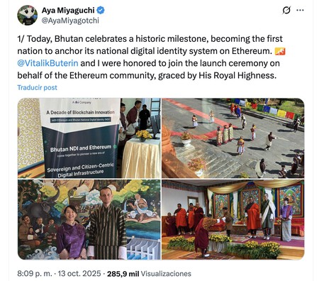 Una ceremonia muy real. Ayya ​​Miyaguchi, presidenta de la Fundación Ethereum, explicado en X mientras viajaba con el cofundador de Ethereum, Vitalik Buterin, para celebrar la ceremonia de lanzamiento de este nuevo documento de identidad nacional en Bután. Acompañaron al evento al primer ministro de Bután, Tshering Tobgay, y al joven príncipe del reino, Jigme Namgyel Wangchuk, de 9 años. Recordemos que Bután es en realidad el Reino de Bután y tiene como forma de gobierno una monarquía constitucional.