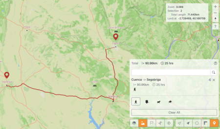 Pero más allá de satisfacer nuestra curiosidad, hay algo más que podemos hacer con esta carta: jugar. el equipo tiene incluido Una función aún en versión beta que permite explorar el tiempo que tardaron estas rutas. Para ello debemos elegir entre varios puntos y elegir entre cuatro tipos de transporte terrestre: