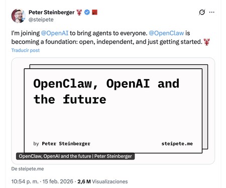 ¿Y ahora qué?. Que el proyecto siga siendo de código abierto e independiente es una gran noticia y teóricamente permitirá que OpenClaw siga funcionando como hasta ahora, pero los recursos de OpenAI sin duda pueden permitirle crecer de manera excepcional. Queda por ver si esto tendrá en última instancia un impacto negativo, pero también parece claro que esos “agentes completos de IA” pronto podrían ser una parte integral de las ofertas de otras empresas de IA.